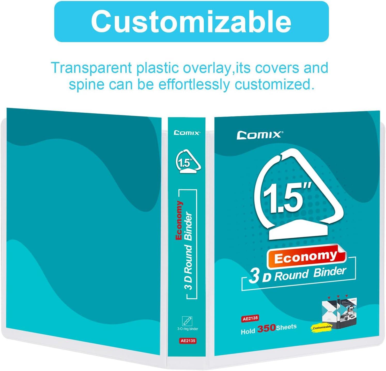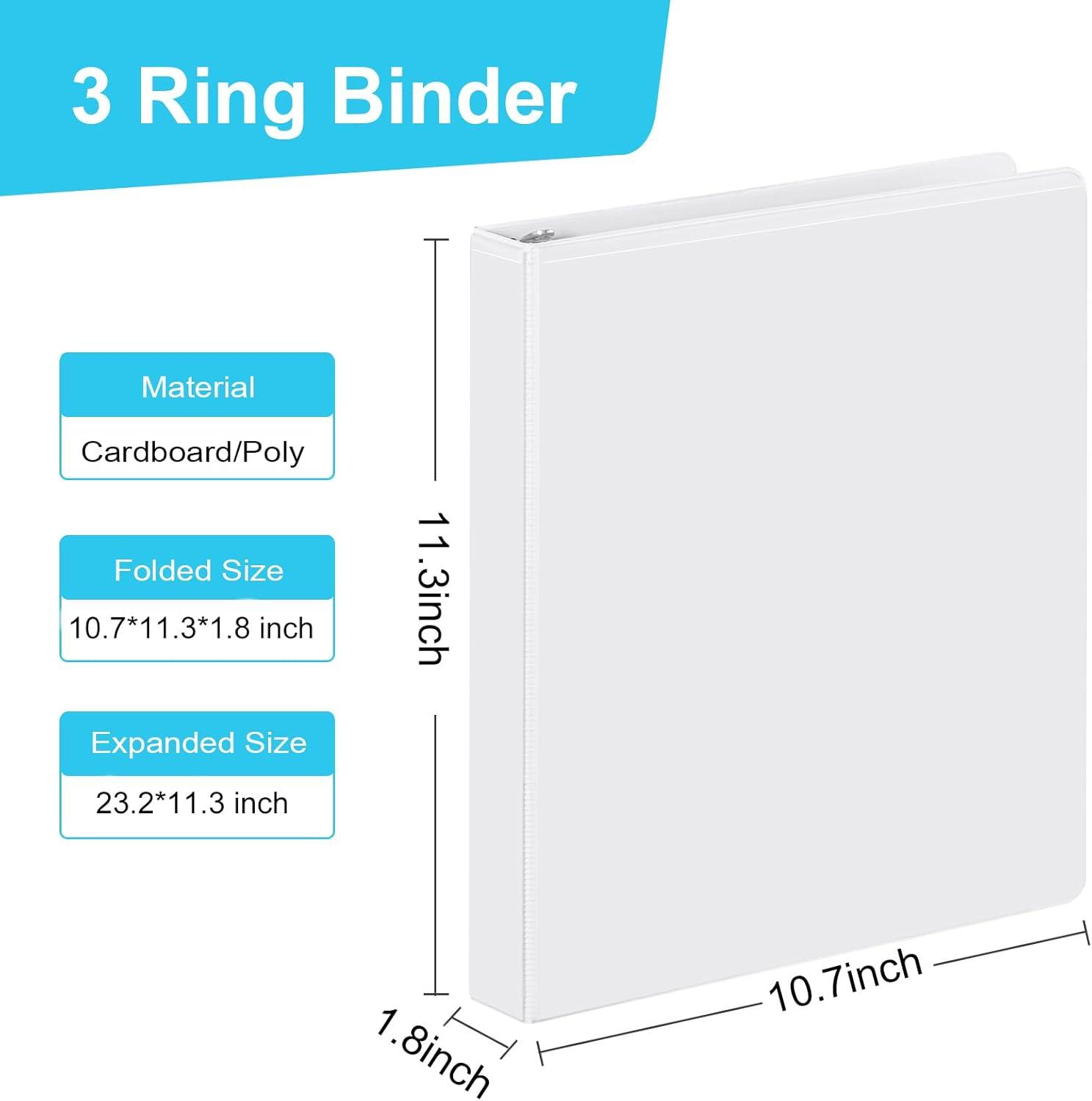 COMIX 3 Ring Binder,1 inch Slant-D Clear View Cover with Pockets, Holds 225 Sheets of US Letter Size Paper, Black Binder for School Office and Home, 12 Pack(White)
