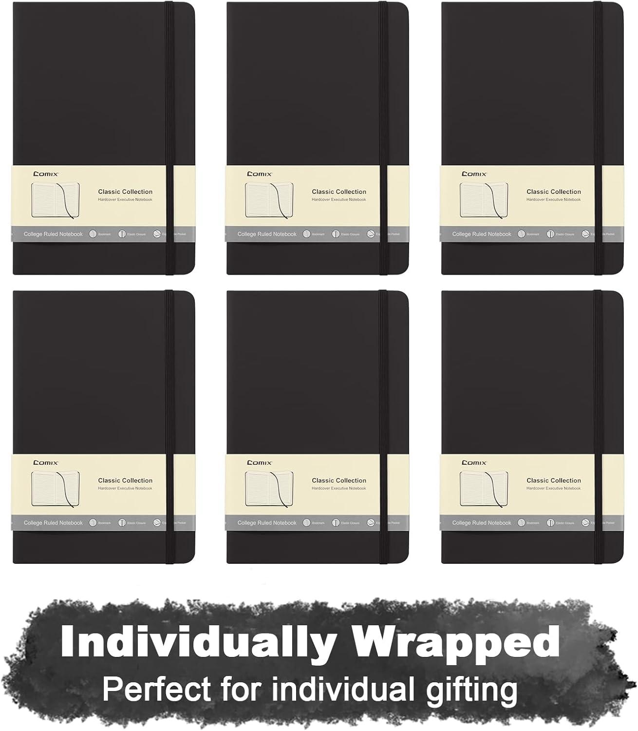 Comix 6 Pack Lined Journal Notebooks for Work, 240 Pages, 5.5″x8.3″, Black, Hardcover, A5 Medium College Ruled, Journaling Notebooks for Notes-taking, Fits for Office School Home(Black)