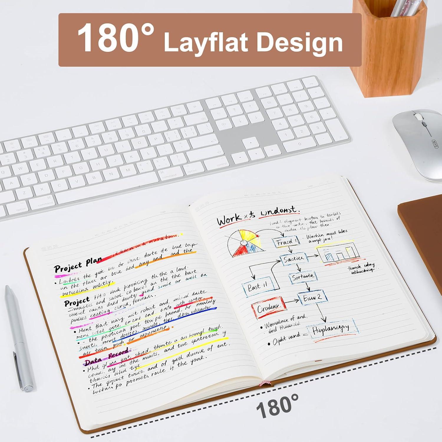 【Lay-Flat Binding + Rigid Hard Cover】Opens a full 180° for edge-to-edge writing and easy scanning and photocopying, and provides a stable writing surface at your desk, in meetings, or on the go.