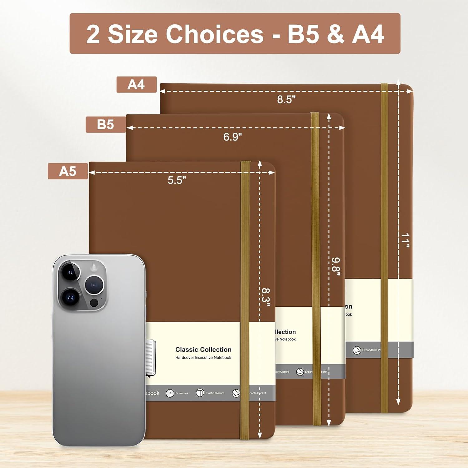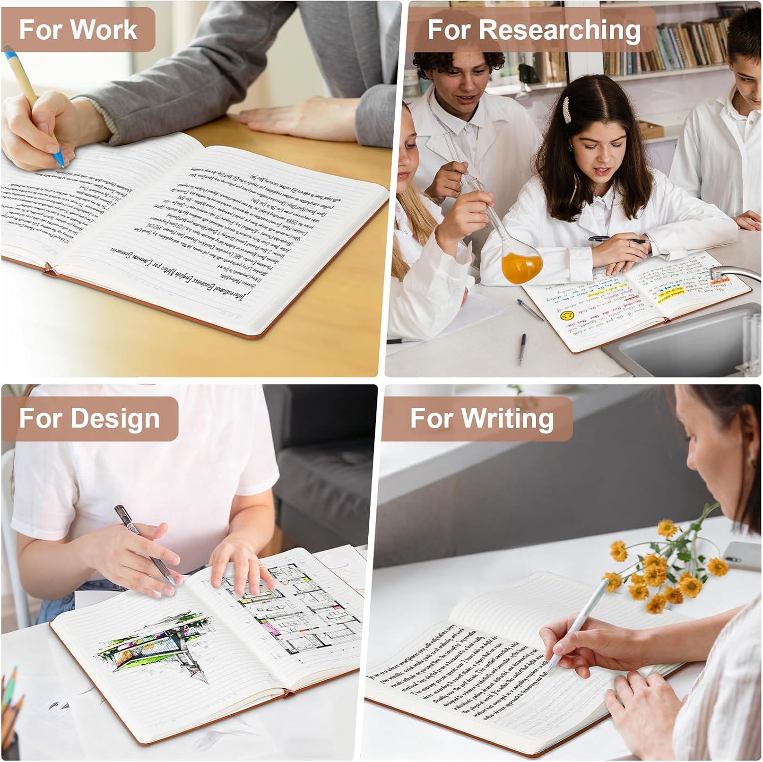 【A4 Size 8.5″ x 11″ Hardcover Notebook】Full-size pages for meeting notes, project plans, and diagrams. Fits in standard folders and briefcases. Ideal for work, school, and the office.