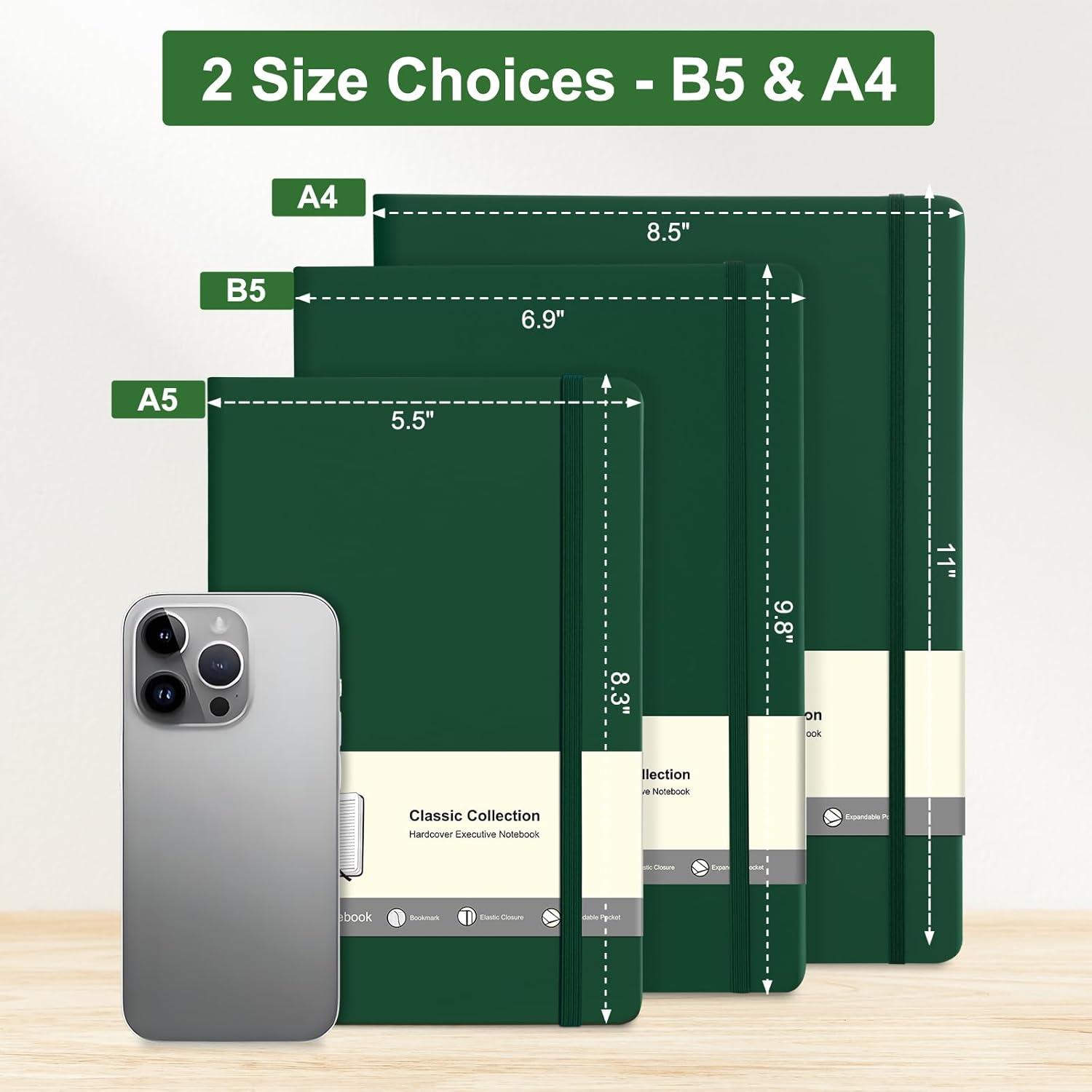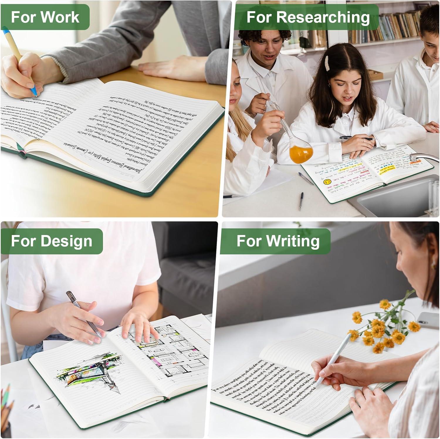 【A4 Size 8.5″ x 11″ Hardcover Notebook】Full-size pages for meeting notes, project plans, and diagrams. Fits in standard folders and briefcases. Ideal for work, school, and the office.