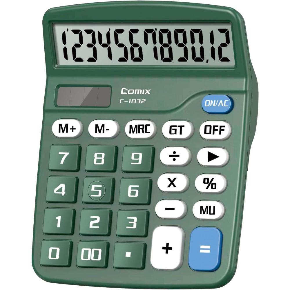 Comix Desk Calculator with 12 Digits Large LCD Display, Solar Battery Dual Power, Large Computer Keys Basic Calculator for Home Office School(C-1832GR)