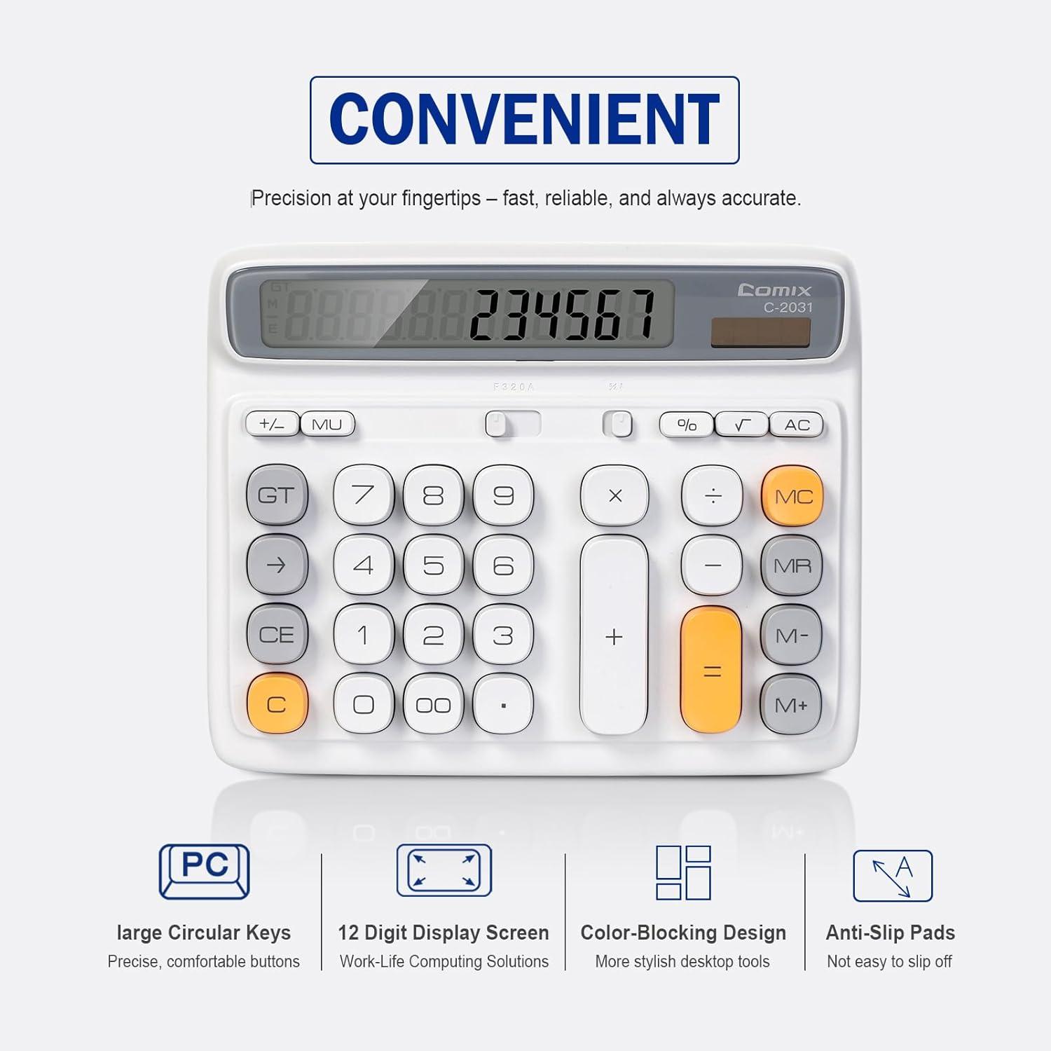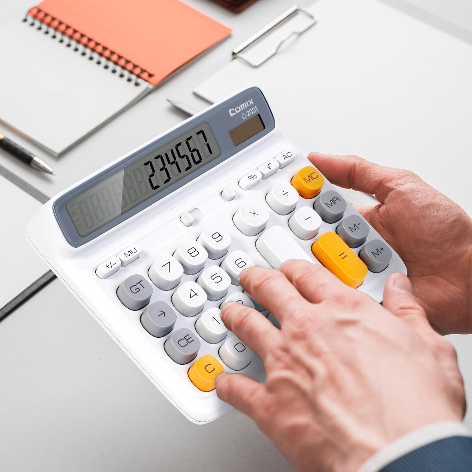 Comix Desk Calculator with 12 Digits Large LCD Display, Solar Battery Dual Power, Large Computer Keys Basic Calculator for Home Office School(Gray)