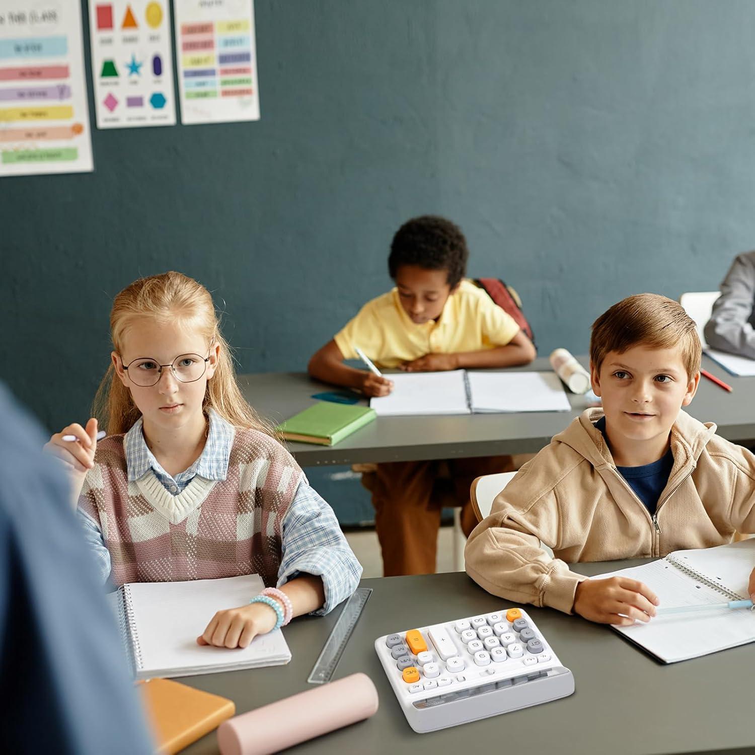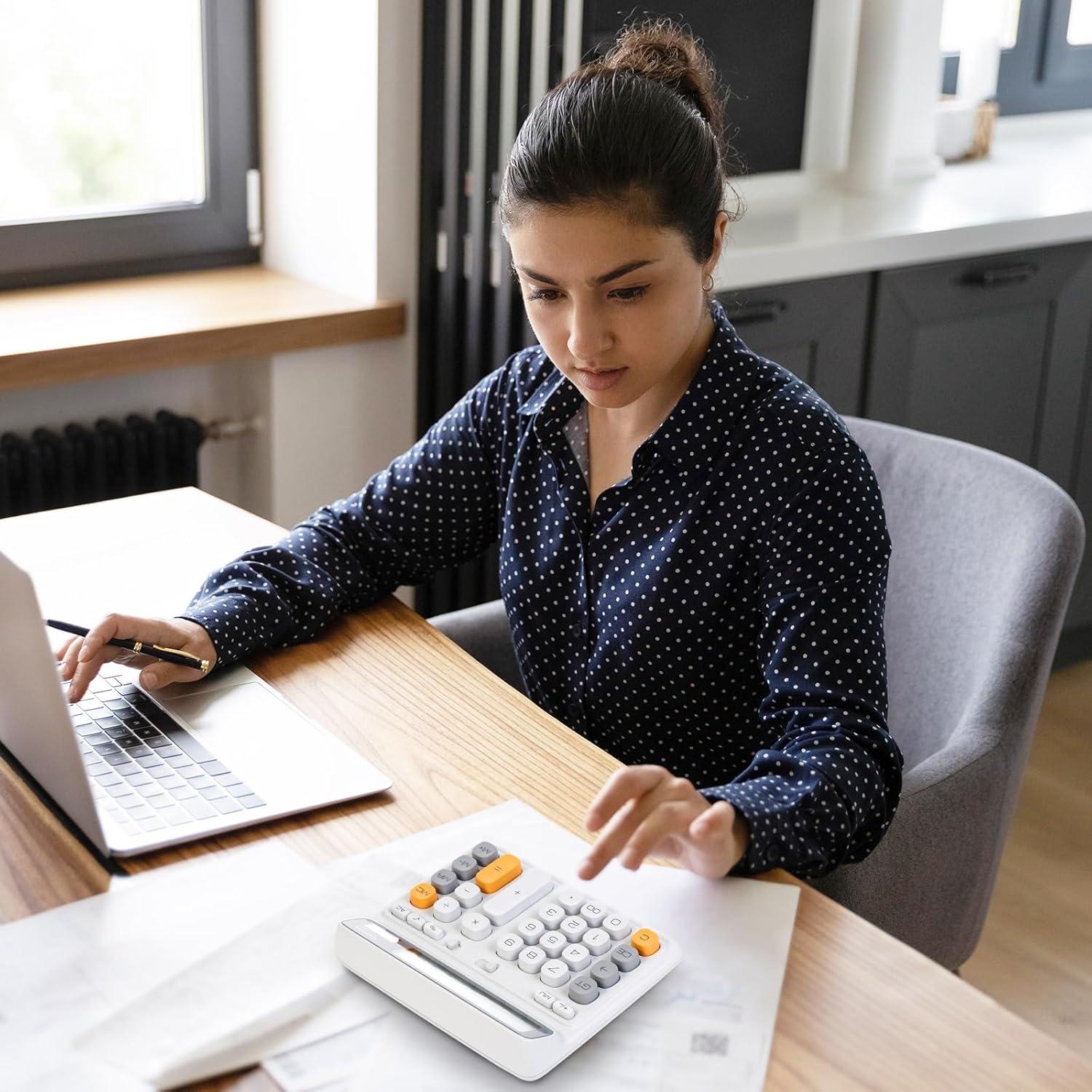 Ergonomic Computer Key Design: Featuring a user-friendly computer keyboard layout, the round keys of this desk calculator deliver ultra-comfortable touch and clear key feedback. Its stylish color-blocking look also adds a modern vibe to your workspace.