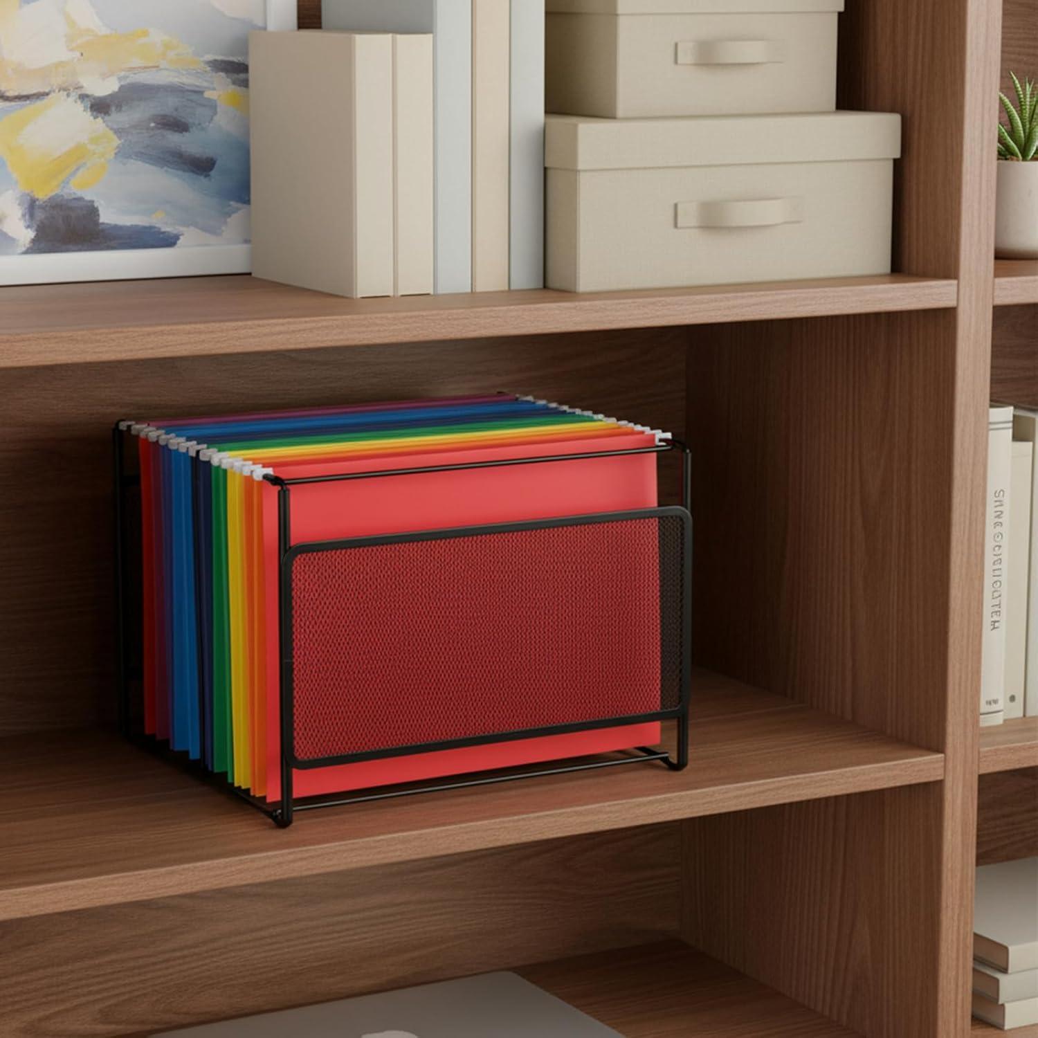 【Sturdy Material】The hanging file folder box is made of high-quality black metal mesh material with an embedded sturdy frame, offering exceptional texture and durability. It can maintain stability even while storing heavy documents folders.
