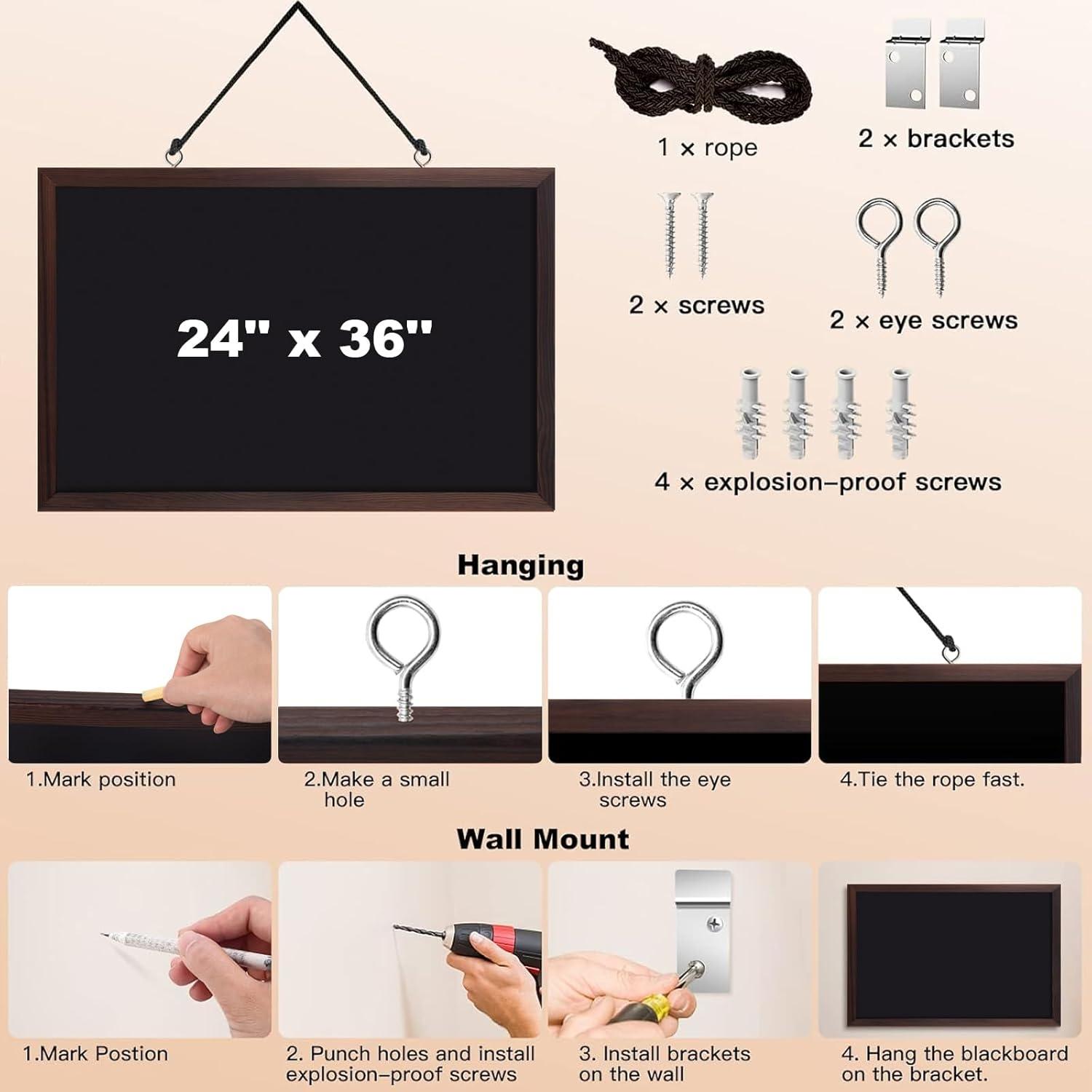 Multiple usage scenarios: The sizable 24×36 inches chaklboard is ideal for use in numerous settings including kitchens, wedding displays, kids' rooms, living areas, café shop, restaurant, commercial environments, etc.