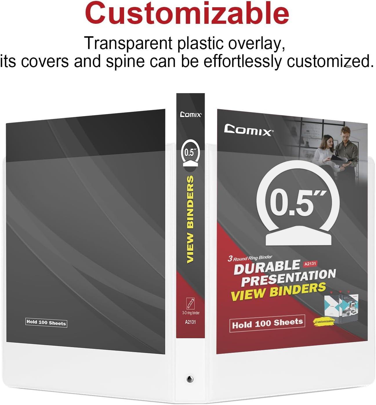 COMIX Sturdy 3 Ring Binder 1.5 inch with Clear View Cover, 1-1/2″ Round Ring View Binder, PVC-Free, 300 Sheets Capacity of US Letter Size Paper, Office & School Supplies, 6 Pack (White) & Comix Magnetic Dry Erase Markers, Fine Tip Black Whiteboard Markers with Eraser Cap, Low Odor Black Markers for Kids Teachers