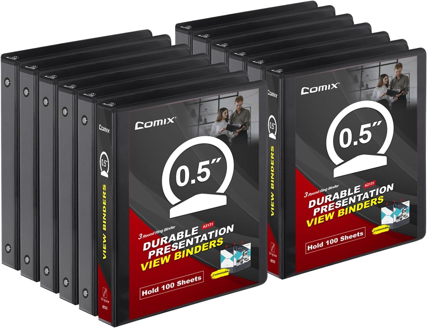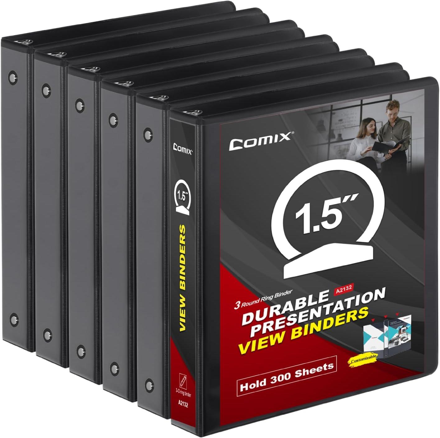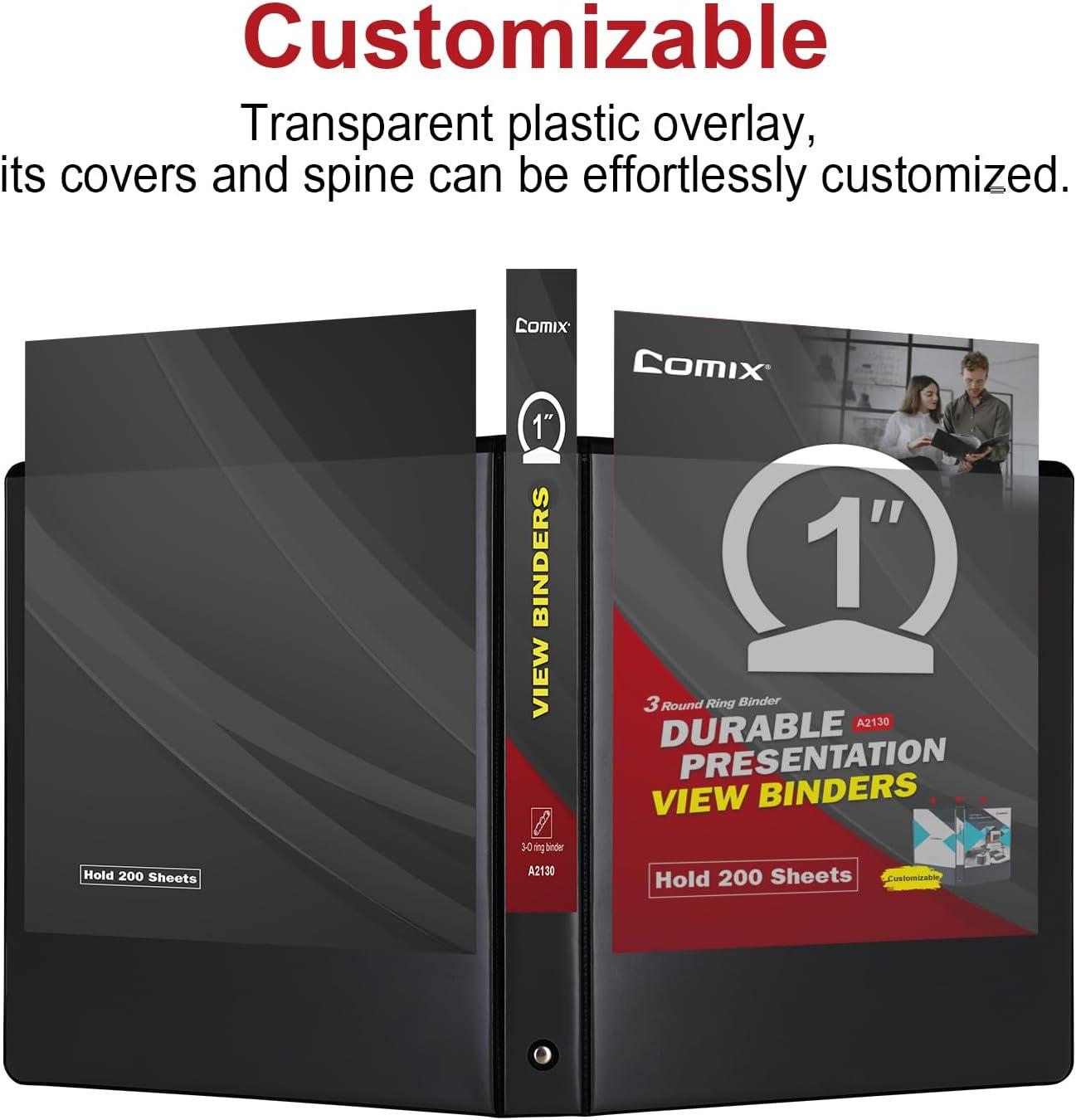 COMIX Sturdy 3 Ring Binder 1 inch with Clear View Cover, 1″ Round Ring View Binder, PVC-Free, 200 Sheets Capacity of US Letter Size Paper, Office & School Supplies, 6 Pack (Black)(Black)