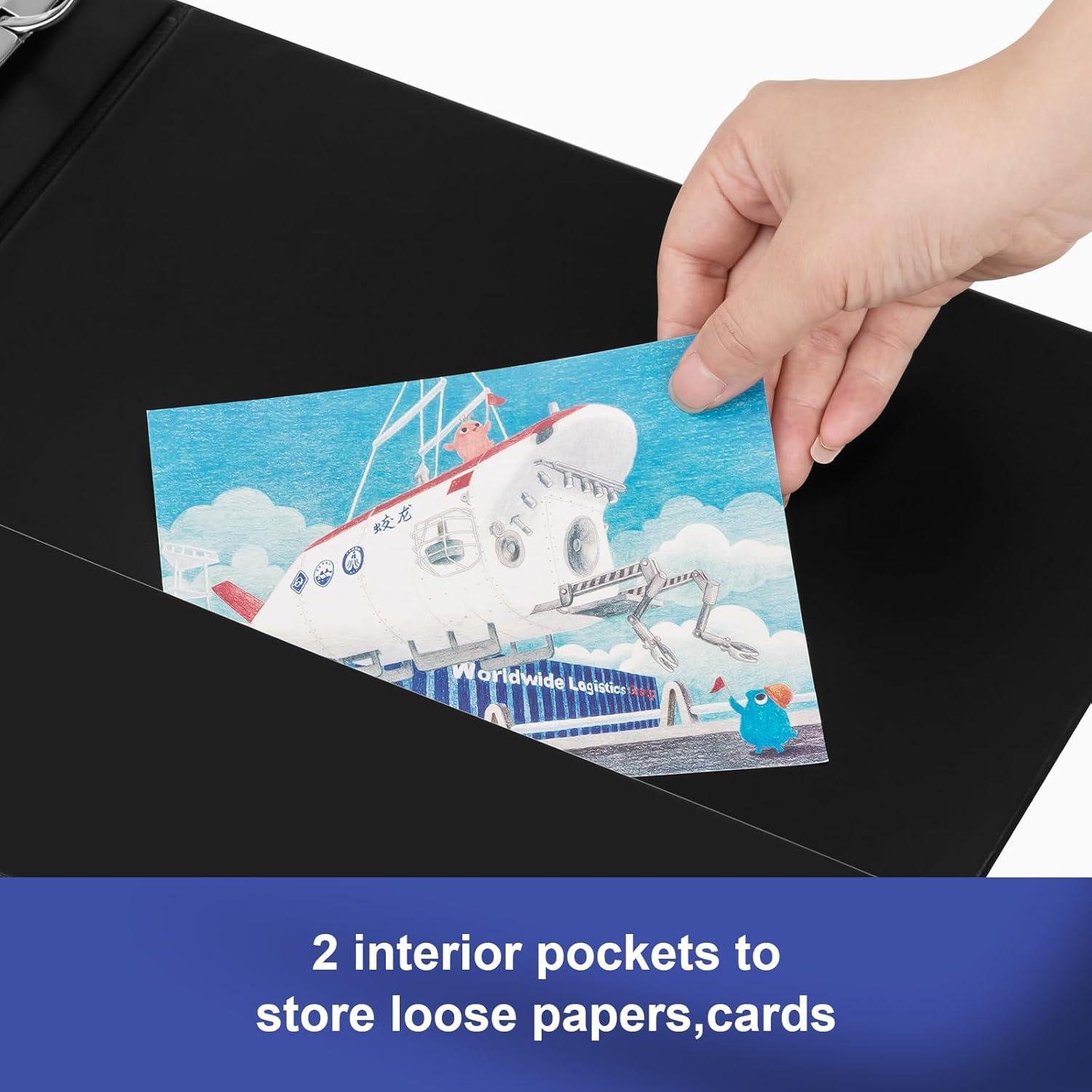 Multipocket:3 ring binder with 2 interior pockets for storing business cards, sticky note and memo papers.
