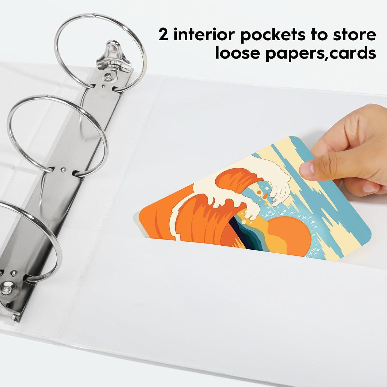 Multipocket:3 ring binder with 2 interior pockets for storing business cards, sticky note and memo papers.