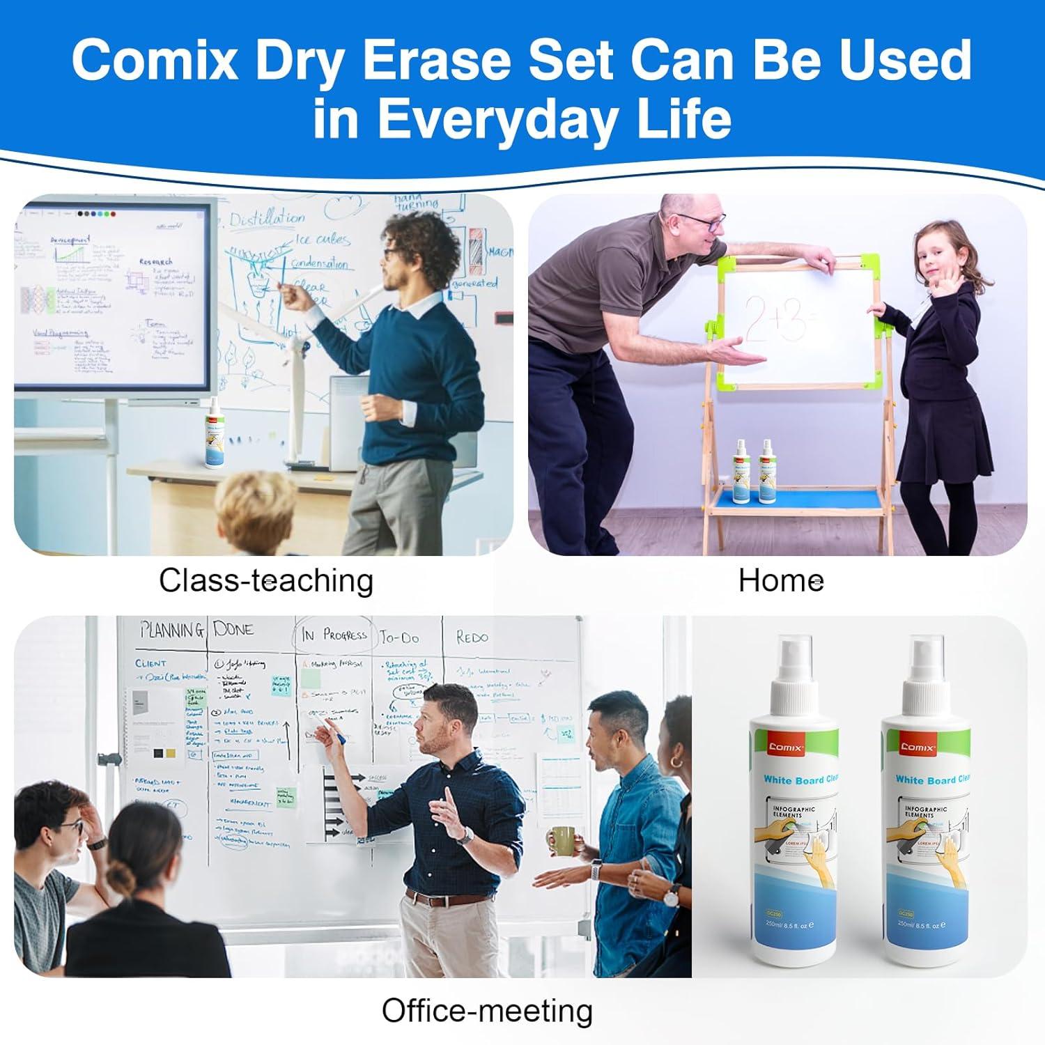 【Long-Lasting Results】Comix dry erase spray cleaner has powerful cleaning agents work to ensure that your whiteboard stays clean and clear for longer periods of time than other cleaners on the market, saving you both time and money.