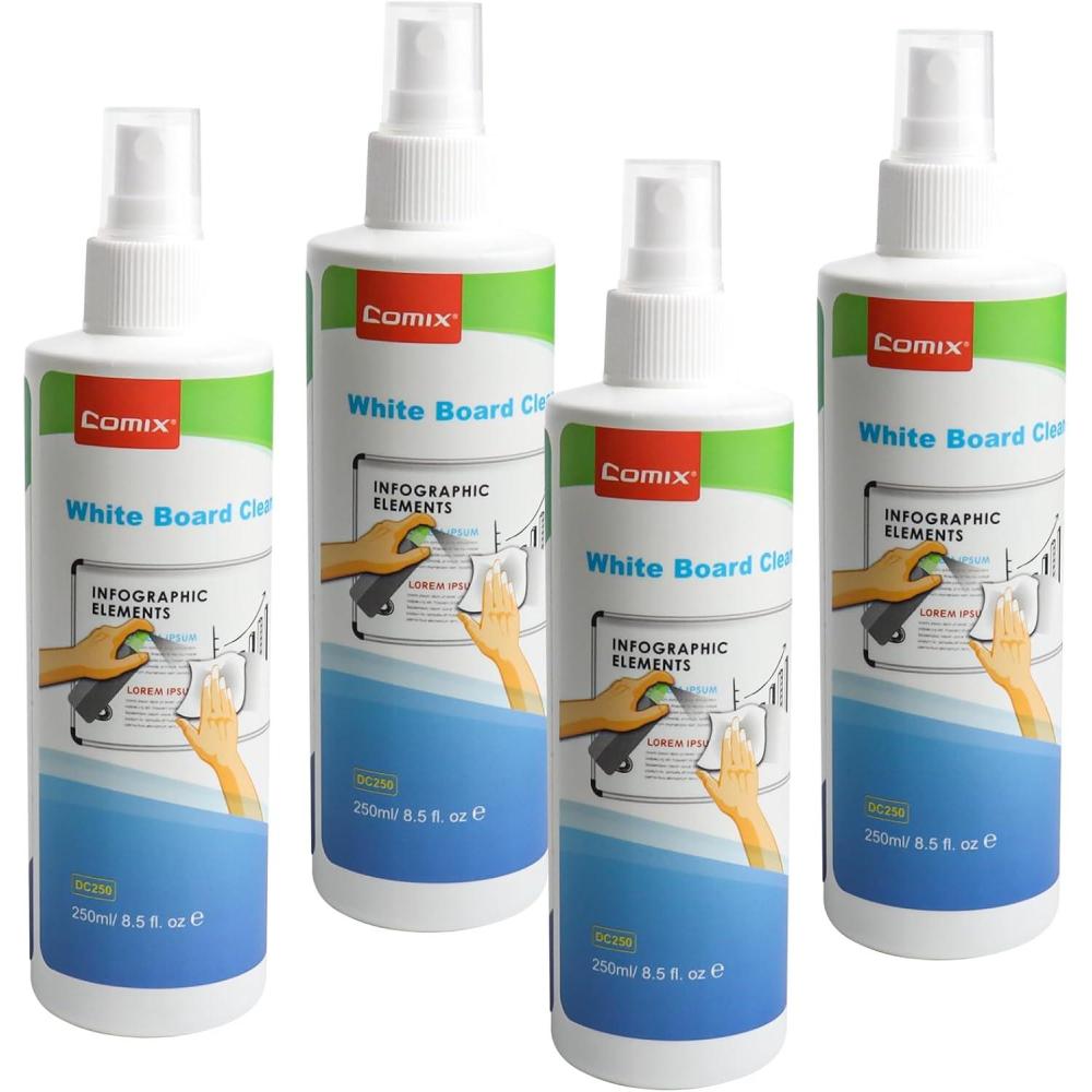Comix Whiteboard Cleaner, 8.5oz Dry Erase Cleaner, Non-Toxic White board Cleaning Spray, 4 Pack(8.5 Fl Oz (Pack of 4))