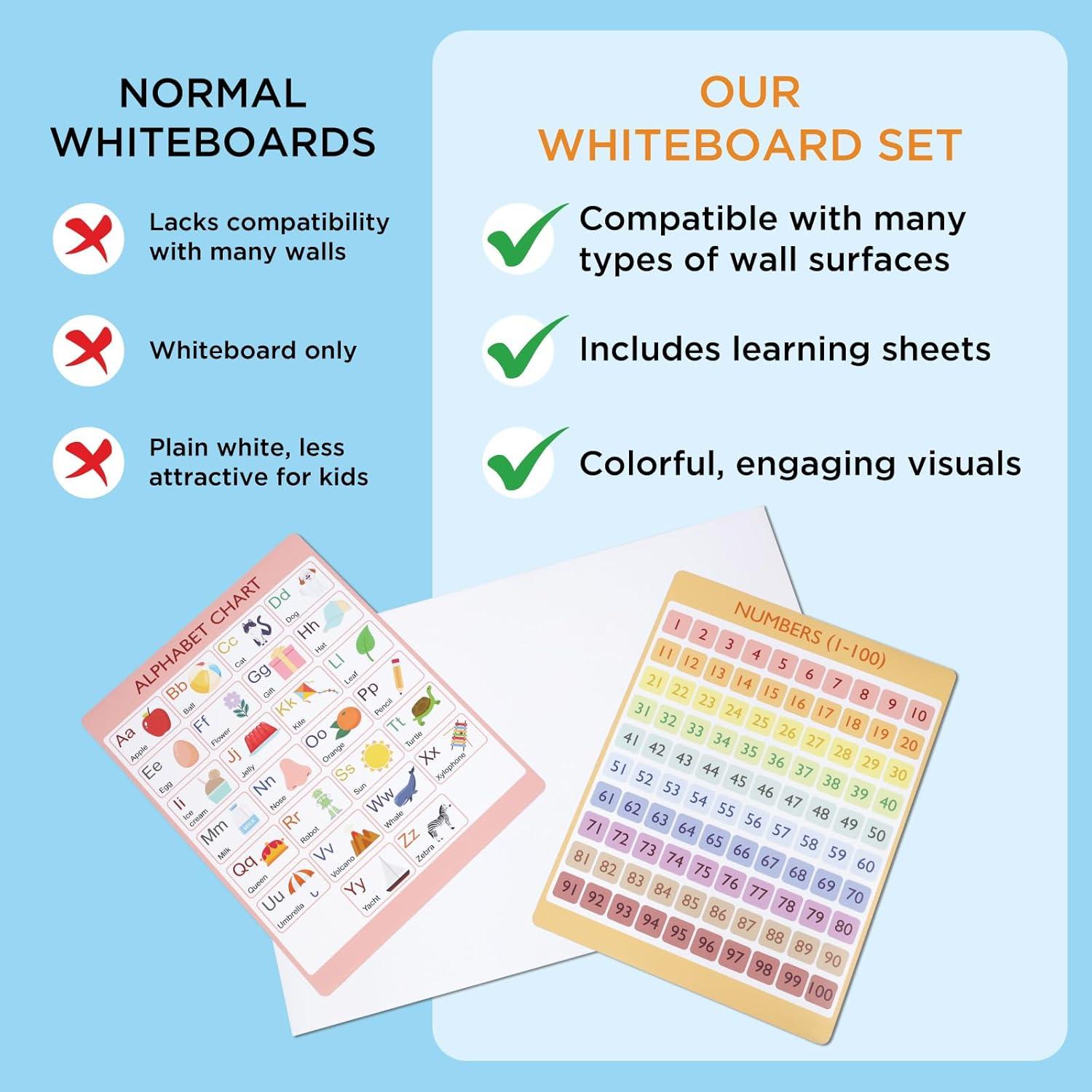 COMIX Whiteboard Dry Erase, 26″ x 17″ Adhesive Whiteboard for Wall with Magnetic Alphabet Chart, 1-100 Number Chart, Educational Charts Set for Preschool Student Kids Home Classroom Teaching(Alphabet+number Table)